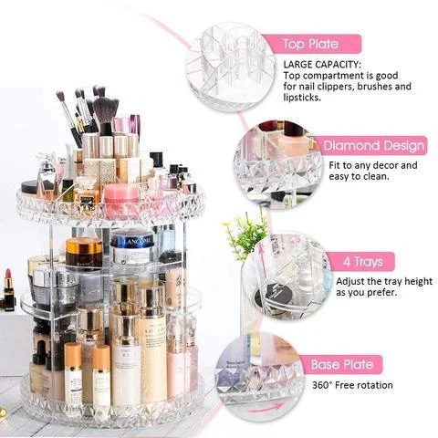 - 1 x 360 Rotating Adjustable Makeup Organizer.