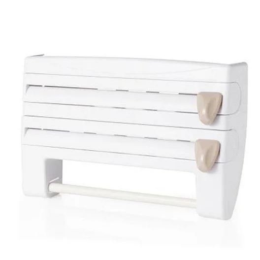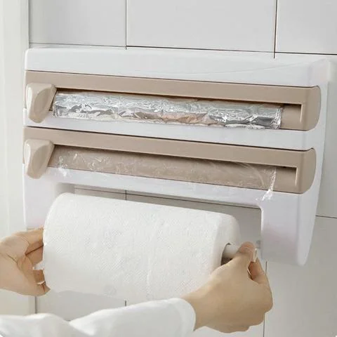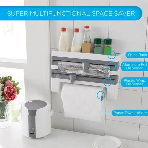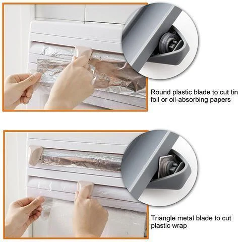 If you want a more organized kitchen at all times, this 4 in 1 Kitchen Wrap Dispenser is for you. This ergonomic tool keeps your foil, plastic and paper in one place and a mini shelf on top for your condiments and many more. The knobs for the dispenser have a nice concealable blade that cut right through the wrap. Easy to install and use. This elegant looking and safe device will keep your kitchen organized and reachable.