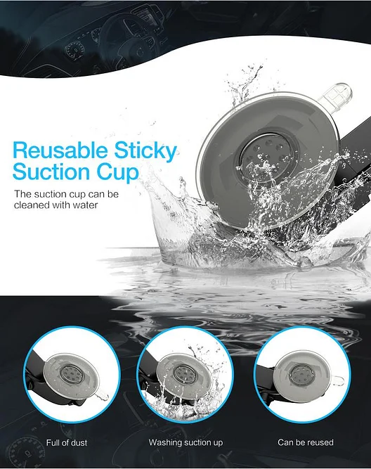 The suction cup can be mount strongly for a years, even in hot condition. It also can be washed in water and reuse for many times. This device is designed in elegant style, that makes your car more professional inside.