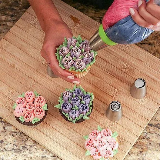 Thicker icings tend to work best with CakeLove nozzles. For best results, use this buttercream recipe: