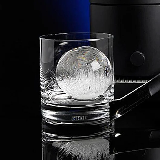 The surface area to volume ratio of an ice sphere is less than a cube of the same volume, which means that the outside of the sphere comes into contact with less of your drink and significantly reduces the rate of melting/dilution while keeping it ultra cold. In addition, by removing the air bubbles from the ice sphere we have eliminated the risk of it cracking apart in your drink and melting fast.