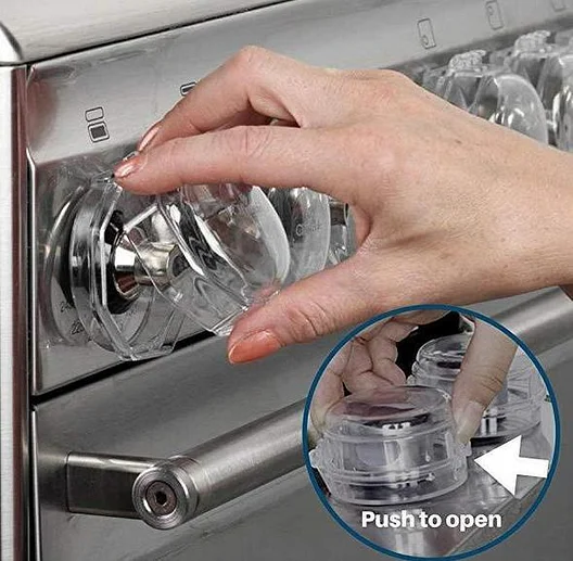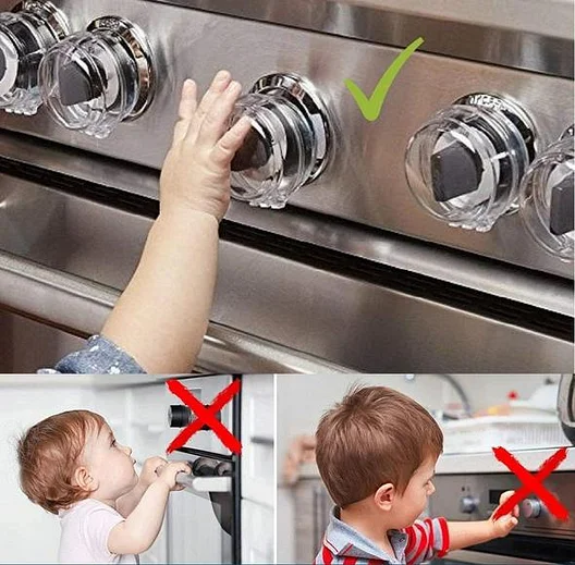 Stove Knobs Safety Covers help protect children from burns, scalds and gas leaks on your stove or oven because they can’t turn the knobs! These are heat-resistant and easily fit over most stove and oven knobs. The covers are universally sized and designed for use with most gas and electric stoves and even some gas grills if they have smaller sized knobs.