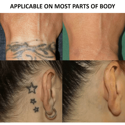 Tattoo Removal Cream removes unwanted tattoos in a 100%SAFE, GENTLE & PAIN-FREE way. It helps fade away your tattoo artwork or permanent cosmetics without leaving tattoo scars.